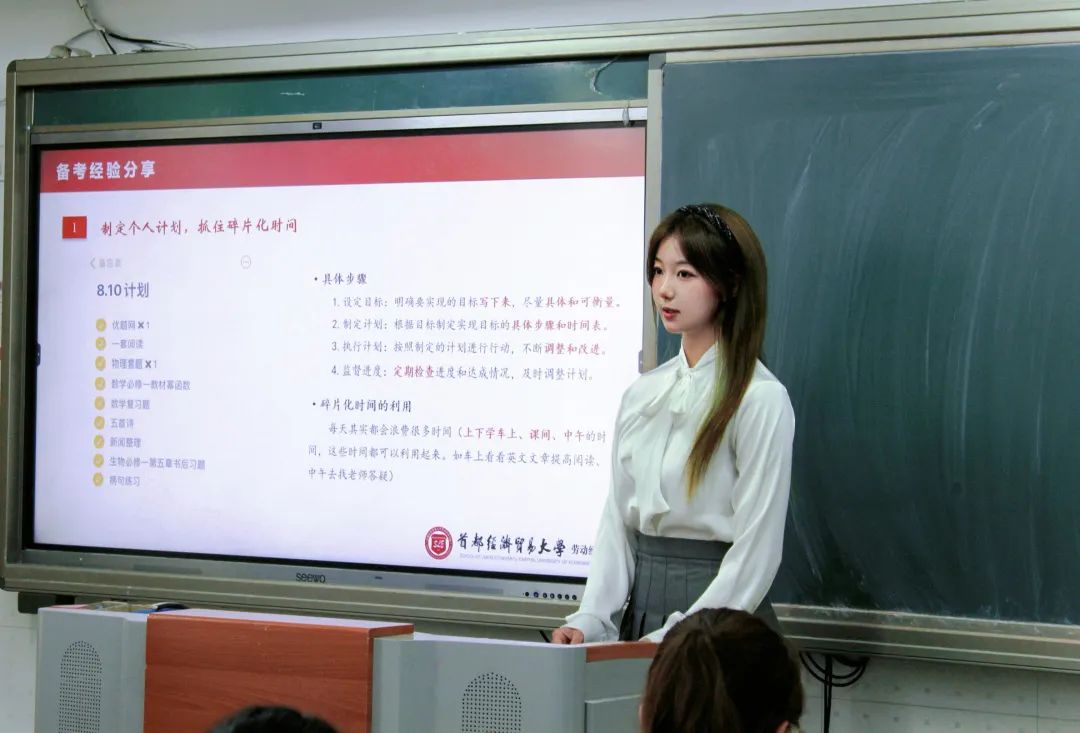4月12日下午,春风和煦,绿意盈盈,首经贸17直播 分团委赴北京市第十八中学开展宣讲交流活动。由17直播22级劳动经济学班团支部与北京十八中高三四班团支部以“逐梦青春 学长引航”为主题进行交流宣讲,向学弟学妹们介绍校院概况与专业设置,分享高考备考经验、考前调整心态的方法以及多彩的校园生活。