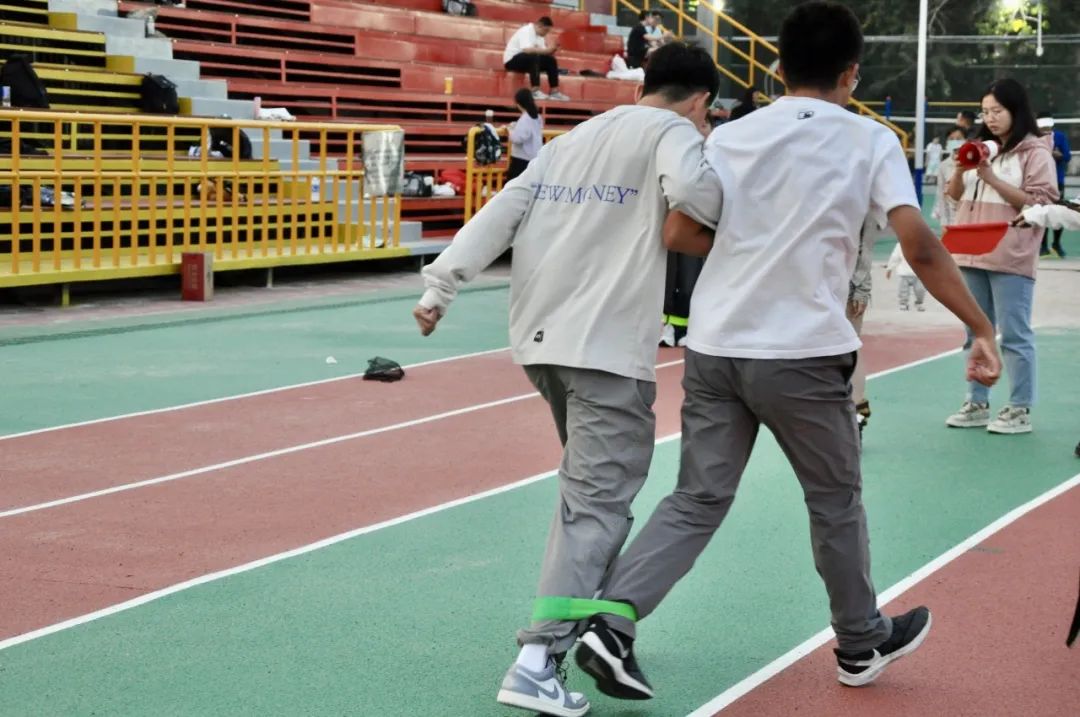 两人三足,默契接力。作为本次运动会最复杂的项目,脚蹼接力和两人三足主要考验同学们的默契程度和反应速度。即使大家偶尔会出现节奏混乱等问题,但是在不断的沟通调整下大家最终步伐一致、齐心协力奔向终点。