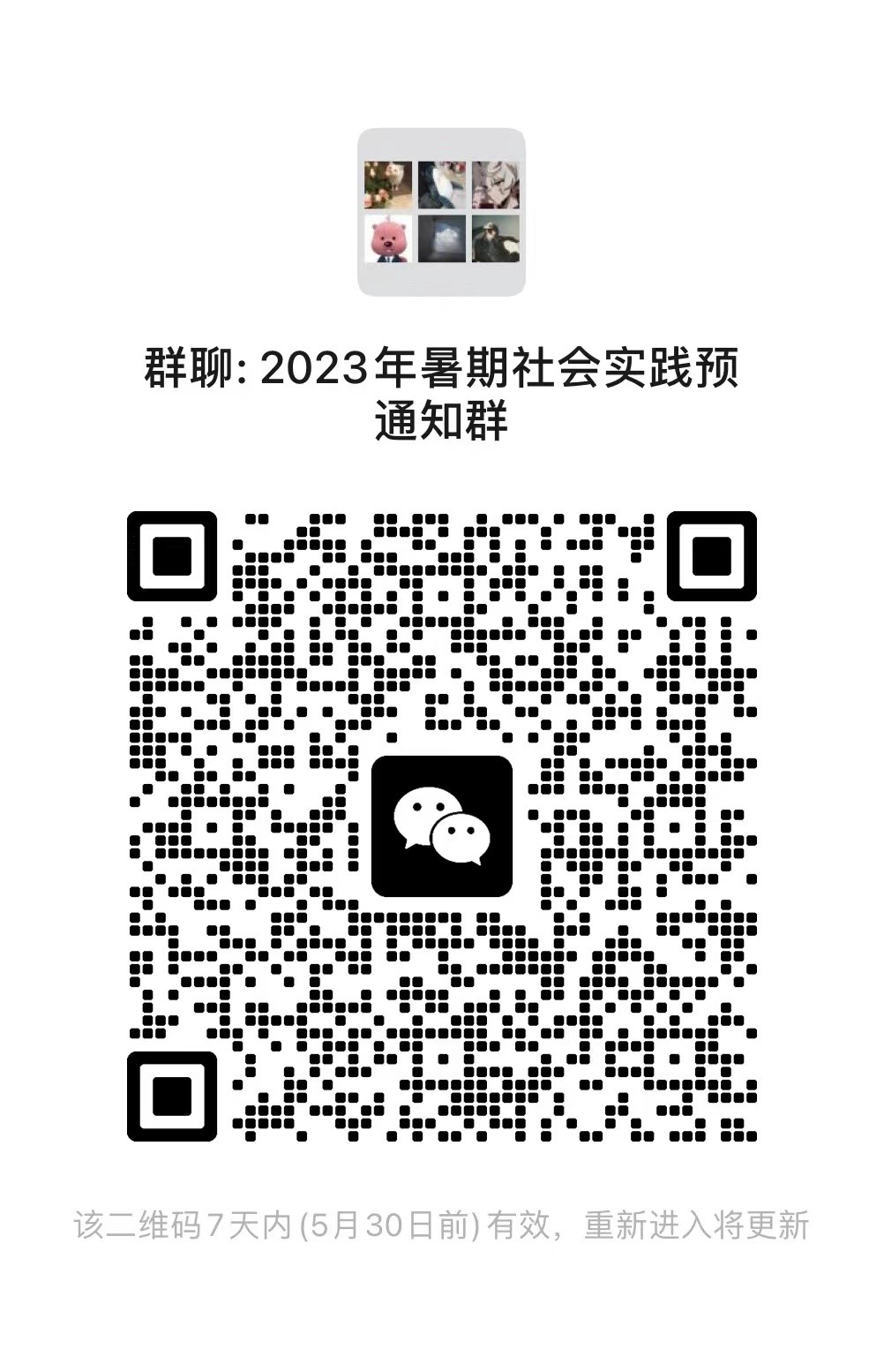 请有意向申报的学生扫描二维码进入17直播2023年暑期社会实践预通知群(附件2)。