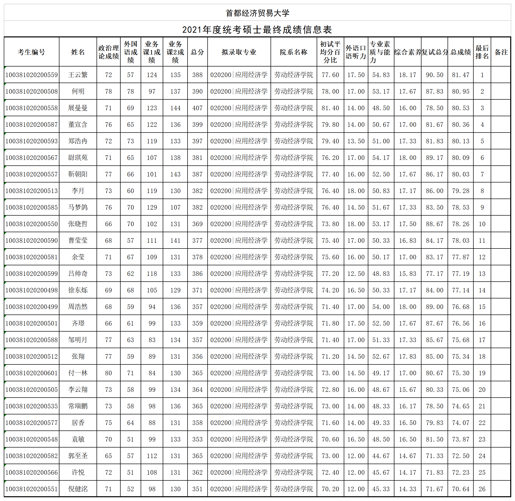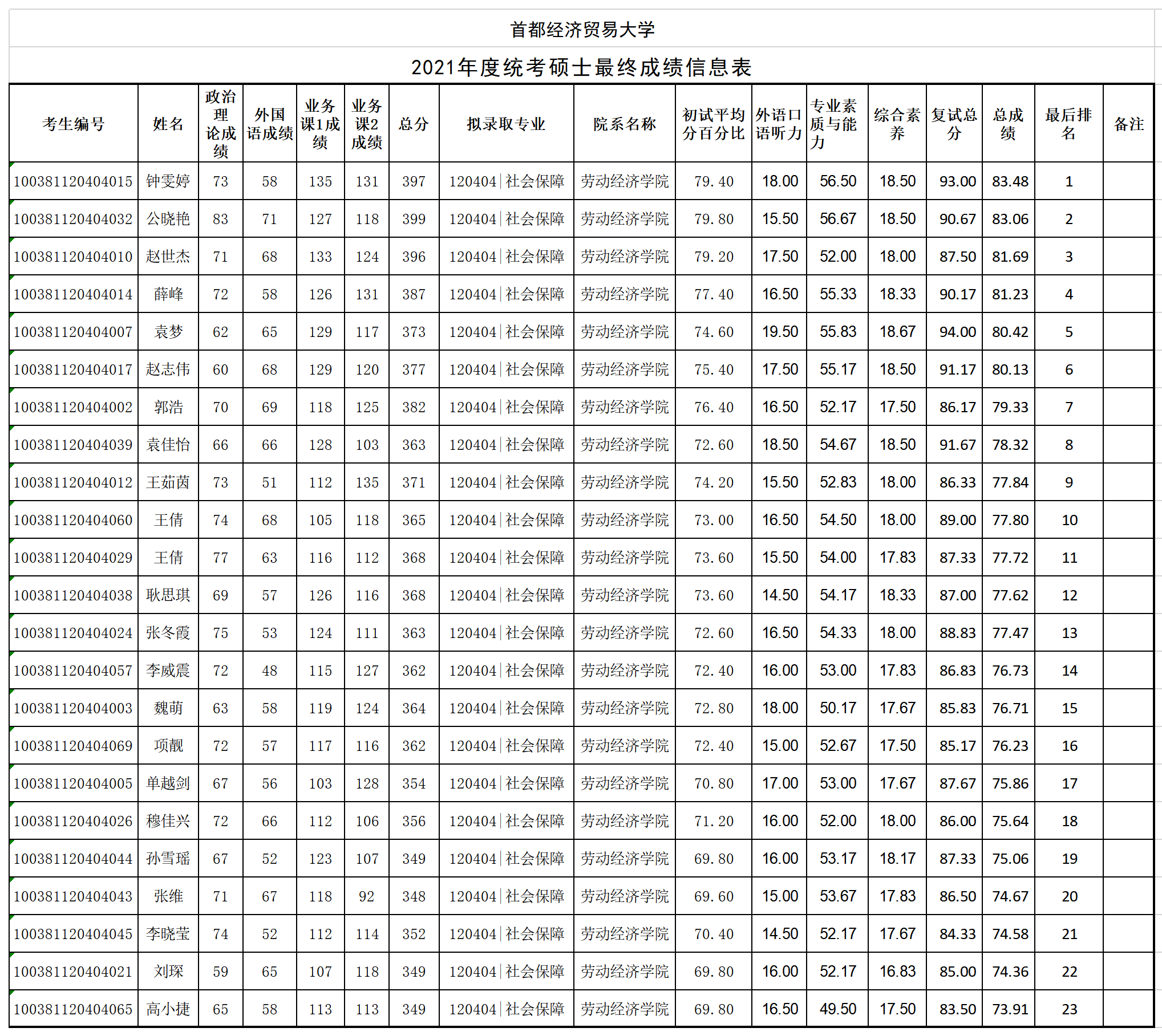 【公示】首经贸17直播 2021年度统考硕士最终成绩公示